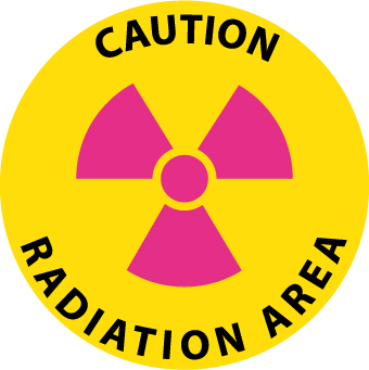 NMC, WFS22, 17" Dia Floor Sign w/Legend: "Walk on, Caution Radiation Area", Ps Vinyl