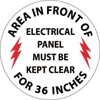 NMC, WFS27, 17" Dia Floor Sign w/Legend: "Walk on, Area In Front Of Electrical Panel Must Be Kept Clear For 36 Inches", Ps Vinyl