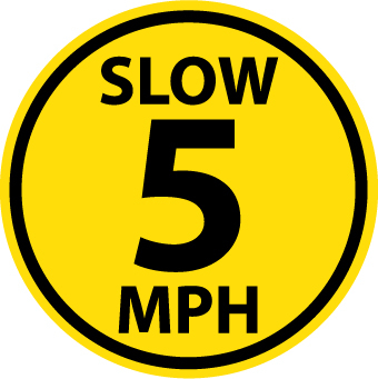 NMC, WFS33, 17" Dia Floor Sign w/Legend: "Walk on, Slow 5 Mph", Ps Vinyl