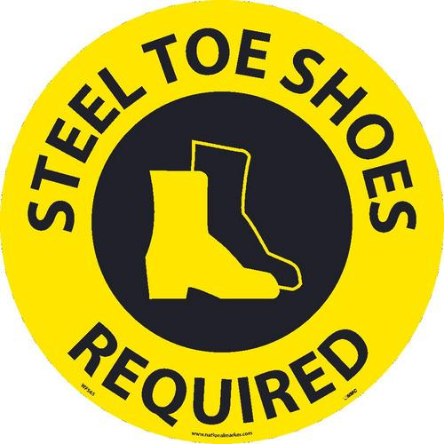 NMC, WFS65, Adhesive Backed Vinyl Floor Sign Walk On "Steel Toe Shoes Required", 17" x 17"