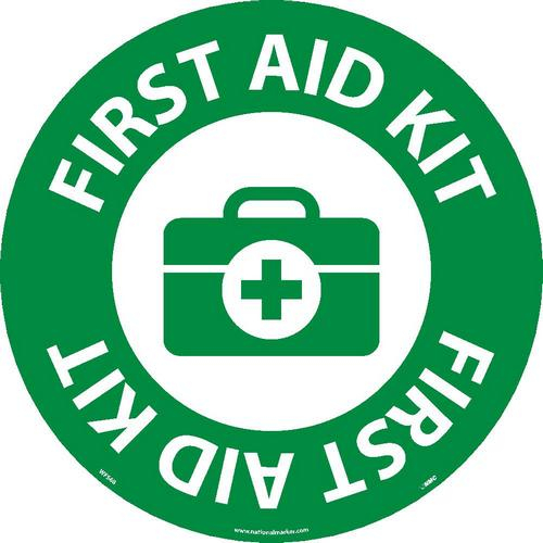 NMC, WFS68, Adhesive Backed Vinyl Floor Sign Walk On "First Aid Kit", 17" x 17"