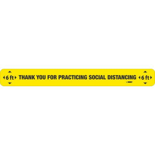 NMC, WFSM78YL10, Walk On, Thank You Social Distancing,Black/Yellow, Floor Strip, 2.25 x 20", Pack of 10