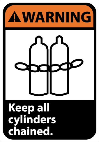 NMC, WGA2AB, 14"x 10"ANSI Sign w/Legend: "Warning - Keep Cylinders Chained (w/Graphic)"