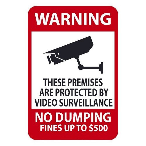NMC, WGA44P, Sign "Warning, These Premises Are Protected By Video Surveillance, No Dumping Fines Up To $500", Adhesive Backed Vinyl, 7" x 10"