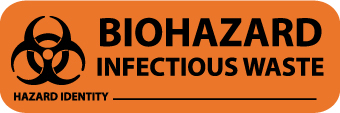 NMC, WOL6, 1"x 3"Biohazard Label w/Legend: "Biohazard Infectious Waste"