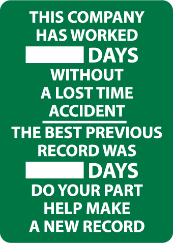 Write-On scoreboards are an economical option to track safety days in your facitily. To update, simply wipe off and write in on the poly-coated space provided.