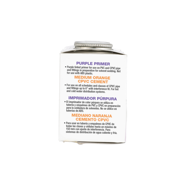 The Oatey 4 oz. Purple Primer and CPVC Medium Orange Cement Handy Pack gives you everything you need for a smooth installation and convenient storage, at the best value. Recommended for cold water systems and hot water systems up to 200°F / 93°C, the included Oatey® CPVC Medium Bodied Fast Set Orange Cement has excellent gap-filling properties. Also included is Oatey® Purple Primer, an NSF-listed, aggressive primer that removes surface dirt, grease and grime; softens the pipe surface to allow for a fast, secure solvent weld; and has a purple tint for visible verification that a primer has been used, which is ideal for areas where plumbing code require this proof. Oatey products have earned the trust of plumbing professionals for over 100 years.