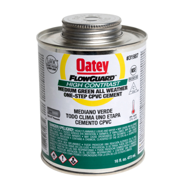 Oatey 31987 FlowGuard High Contrast 1-Step Medium Green Cement, 16 oz, (Pack of 24 pcs)