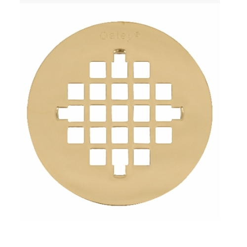 Oatey 42004 is a Universal 4-1/4IN UltraShine® PVD Polished Brass Designer Finish Strainer – designed/manufactured for providing decorative/trimming finishes to residential shower-drains with any 4-1/4IN round drain top.