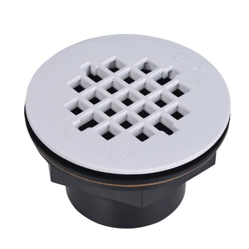 Oatey 42086 is a 2IN 101 PS ABS Solvent-Weld Shower Drain with a Plastic Strainer.