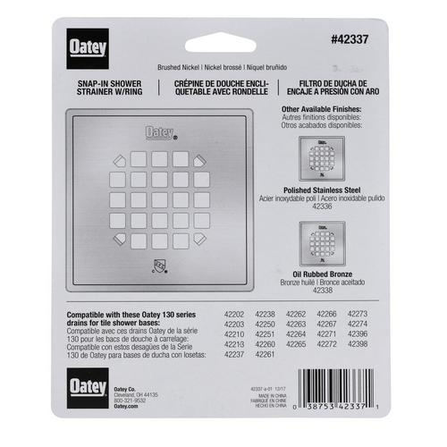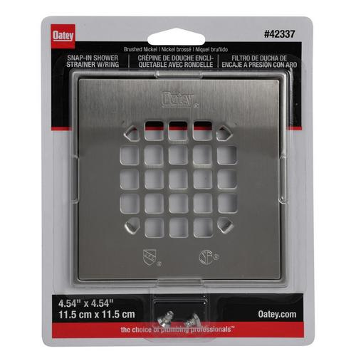 Oatey, 42337, 130 Series Square Brushed Nickel Snap-In Shower Strainer with Ring