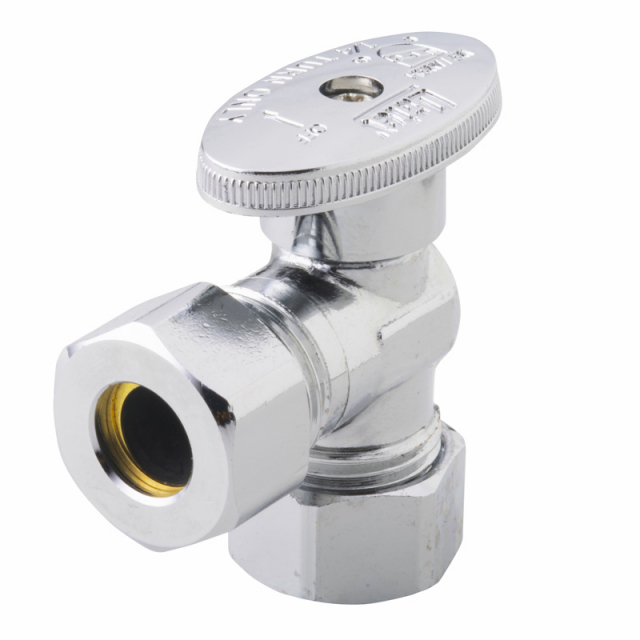 Oatey, 4702PCLF, 1/4-Turn 5/8in O.D. Inlet x 7/16in O.D. Slip Joint Outlet Angle Water Stop Valve