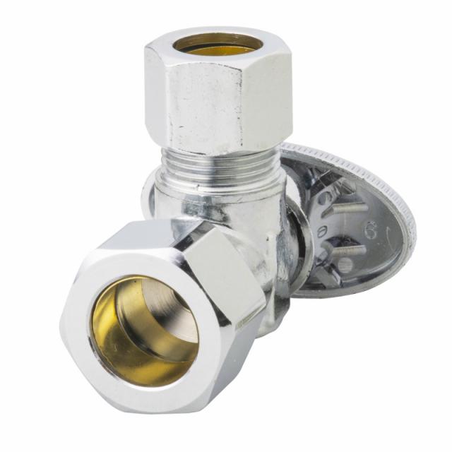 Oatey, 4703PCLF, 1/4-Turn 5/8" OD Inlet x 1/2" O.D. Outlet Angle Water Stop Valve