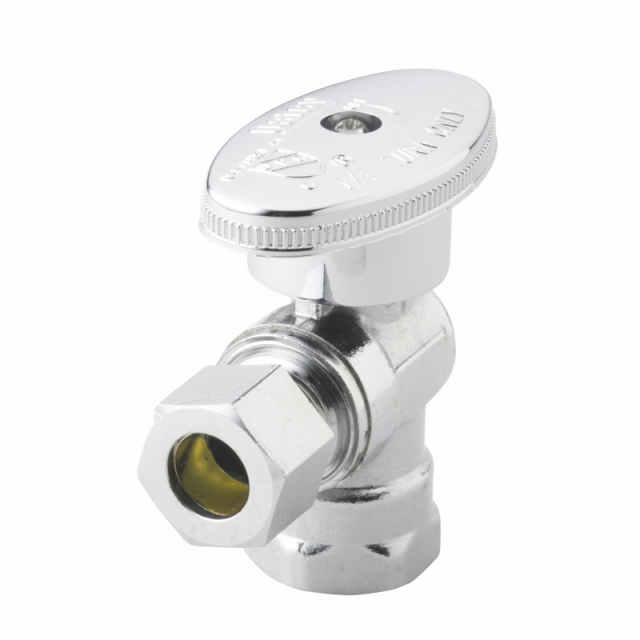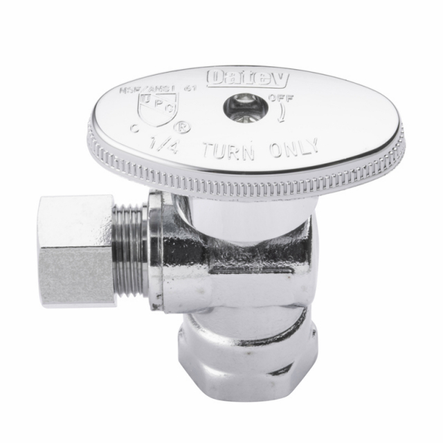 Oatey, 4707PCLF, 1/4-Turn 1/2in FIP Inlet x 3/8in O.D. Outlet Angle Water Stop Valve