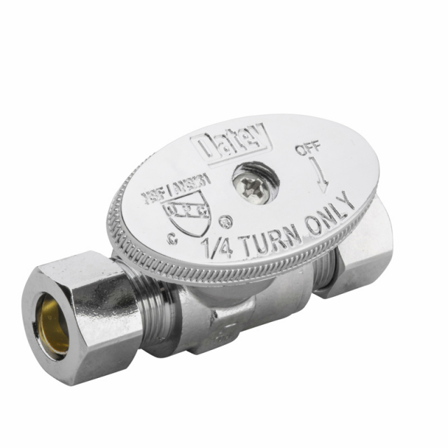 Oatey, 4754PCLF, 1/4-Turn 3/8in O.D. Inlet x 3/8in O.D. Outlet Straight Water Stop Valve