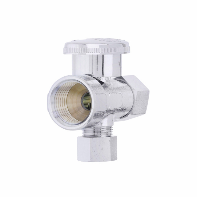 Oatey, 4782PCLF, 1/4-Turn 1/2in FIP Inlet x 1/2in O.D. and 3/8in O.D. Dual Outlet Water Stop Valve