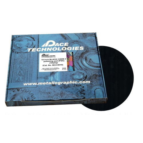Black CHEM 2 Polishing Pad - this is a porometric polymer pad which has a consistency similar to a rubber type of pad. Black CHEM 2 pad has a low nap but behaves as an intermediate polishing pad with a performance between low napped and high napped pads.