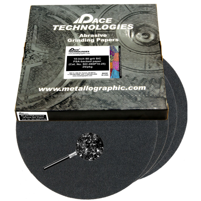 Pace Technologies, SIC-080P10-25, 10-inch 80 Grit SiC Abrasive Grinding Paper with PSA Backing (25 pcs)