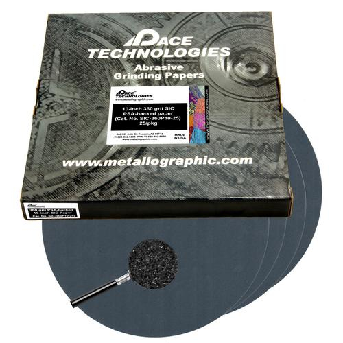 Pace Technologies, SIC-360P10-25, 10" 360 Grit Silicon Carbide PSA Abrasive Grinding Paper (Adhesive Backed)