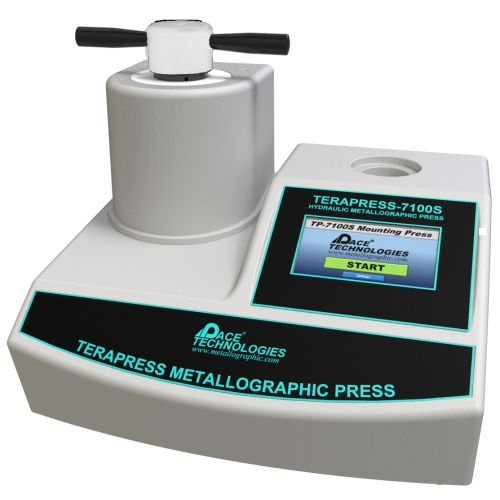 The Terapress TP-7100S automated air pressure mounting press (Part No. TP-7100S) has a solid, easy-to-use, robust design. The Terapress TP-7100S offers users more control for both the heating and cooling cycle as compared to most competitive compression mounting presses. By using air pressure to maintain a constant force on the specimen, the requirement to continually monitor and increase the force as the resin begins to melt is eliminated. Molds can be a fixed size for more efficiency or interchangeable for easy changing of mold sizes.