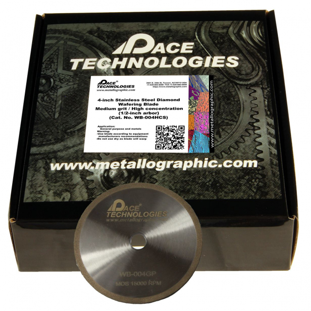 Pace Technologies, WB-004HCS, 4" Dia-mond Wafering Blade (high concentration) with Corrosion Resistant Stainless Steel Core (1/2" Arbor)