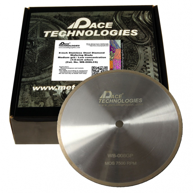 Pace Technologies, WB-008LCS, 8" Dia-mond Wafering Blade (low concentration) with Corrosion Resistant Stainless Steel Core (1/2" Arbor)
