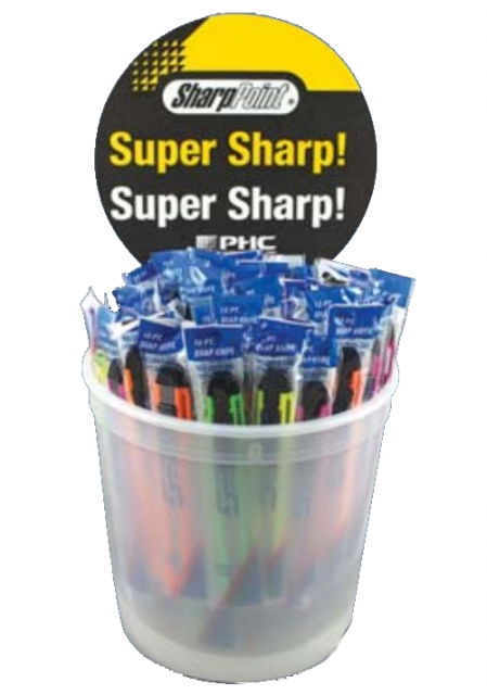 Pacific Handy Cutter, E14119-8, Display Bucket w/75 SharpPoint Neon 13 Point Snap Knives, Assorted
