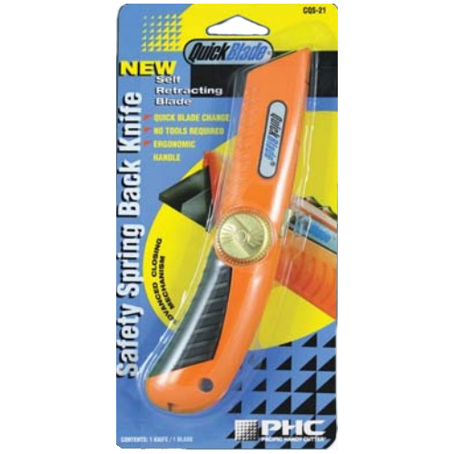 Pacific Handy Cutter, E13203-5, Quickblade Spring Back Utility Knife with DuraTip Safety Blade, Carded