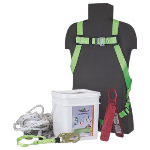 PeakWorks, V8257282, RK7 Reusable Roofer's Kit with Harness, Rope Grab, 25' Vertical Lifeline, Roof Bracket
