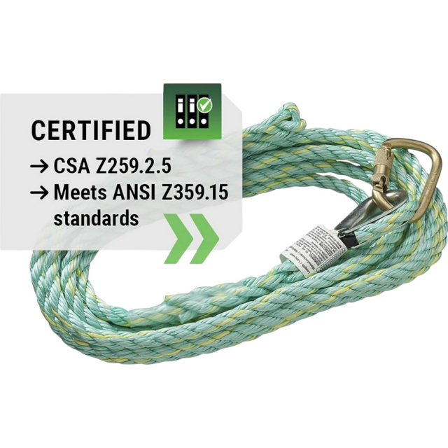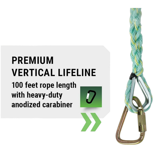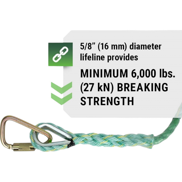 PeakWorks, V84013100, Premium Vertical Lifeline, Carabiner & Back Splice, 100' (30.5 m)