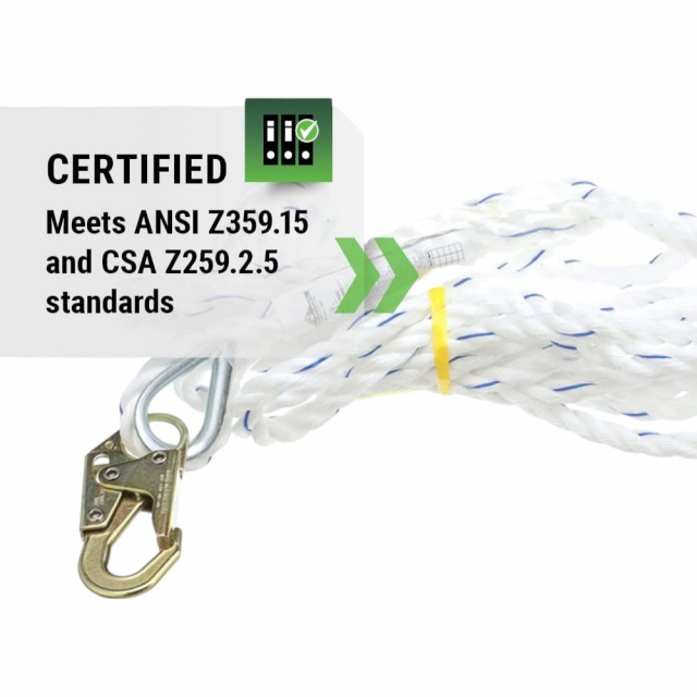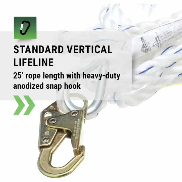 PeakWorks, V84084025, Standard Vertical Lifeline, 5/8" Rope, 25 Ft, Snap Hook