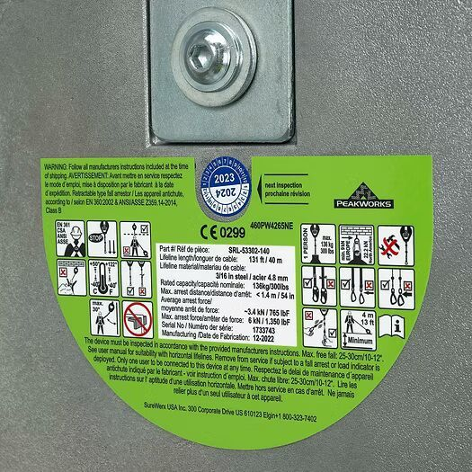 Non-leading edge class 1 SRD is approved for vertical use only and is third-party certified to ANSI Z359.14- 2021 standards. Features aluminum housing for maximum durability with a .21-inch galvanized cable lifeline and comes equipped with a fixed handle anchor attachment point.