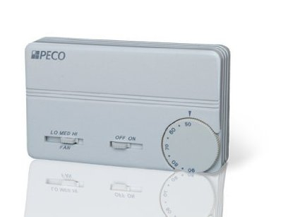 Peco, 67027, TA155-028 On-Off 3-Speed Fan 2-Pipe Manual Changeover Thermostat with Wire Leads Load Connection