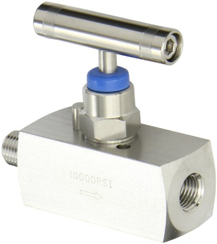 PIC Gauges, NV-SS-1/4-HS-180-MXF, NV Series 1/4" Mini T-Handle Needle Valve, 316SS, 1/4" NPT, Hard Seat, Straight, Male x Female
