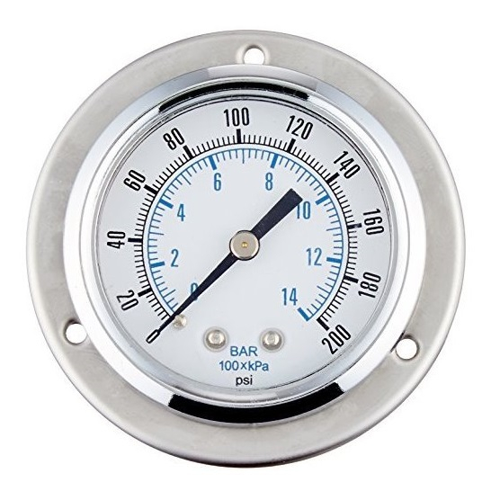 Pic Gauges, PRO-204D-254H, 2-1/2" Dial Dry Front Flange Panel Mount Pressure Gauge with 1/4" NPT Male Connector, 0/300 PSI
