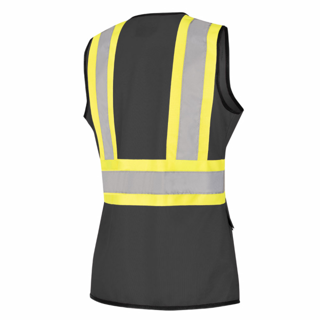 Pioneer, V1027870U-XS, 139BKU Women's Hi-Vis Black Tricot Polyester Interlock Safety Vest, Zipper Closure, XS