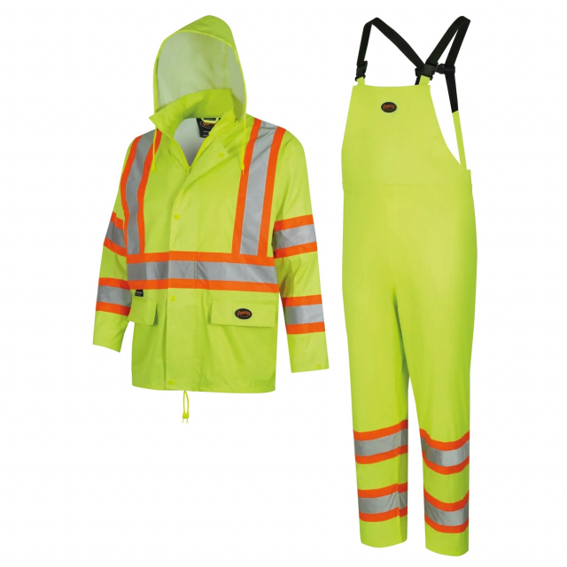 The Pioneer waterproof lightweight safety rain suit will help you stay active dry and protected even in the toughest weather conditions. Built with rugged materials and a functional design this rain suit is ideal for highway road work emergency responders construction transportation utilities and more.