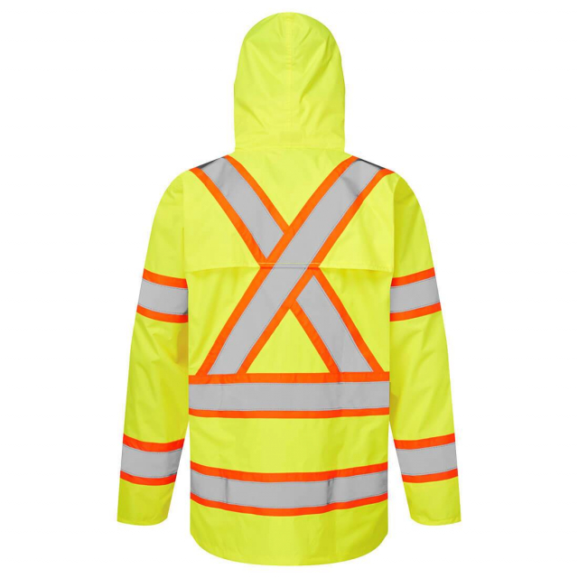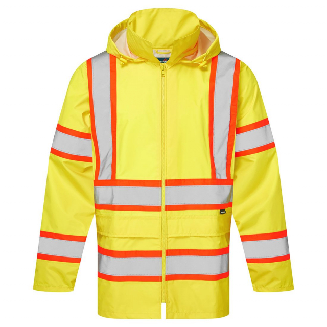 Designed to keep the wearer visible, safe and dry in foul weather conditions, the CA400 is extremely practical and waterproof. It offers exceptional value for money and can be perfectly matched with the H447 Hi-Vis Contrast Tape Rain Pants. This garment can be easily rolled up and stored when not in use. CSA-Z96 Compliant.