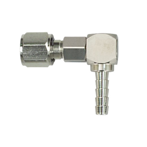 Precision Medical, 0106S, Nipple Assembly, DISS Female, Oxygen, 1/8" Male NTP, Hex Nut, Hose Barb, Swivel