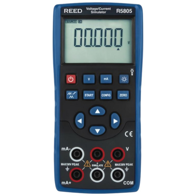 The R5805 Voltage/Current Simulator has been designed to accurately source both voltage and current for a wide range of testing and calibration needs. Featuring a clear 6-digit LCD and a convenient kickstand, it ensures easy readability and hands-free operation in various environments.
