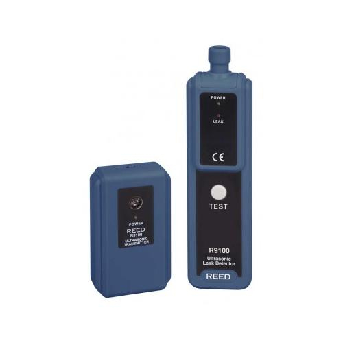 This ultrasonic leak detector converts ultrasound signals produced by industrial machinery into easily recognizable audible sounds for a user to evaluate the condition of individual components. The R9100 includes a transmitter that generates a 40 kHz signal to help pinpoint leaks and headphones for use in loud environments.