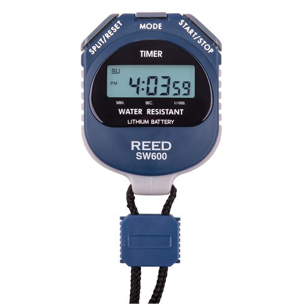 This water resistant (IPX4) stopwatch records real time and split times and displays hour, minute, second and day of the week.