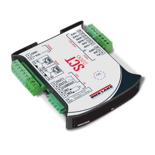 For PLC systems that require weight data from a scale, Rice Lake's compact SCT transmitters deliver equivalent signal-conditioning function without the cost or bulk of a full size weight indicator/controller. Rice Lake's SCT-2200 is DIN Rail mountable within a cabinet or control panel, where it converts a scale's load cell signals to analog output, serial output, or a specific network protocol. Unlike many other signal transmitters, the SCT-2200 has its own 0.3 inch weight display, with annunciators for unit and weighing status, and push buttons for zero, tare and setpoint entry, simplifying scale setup, calibration and operation.