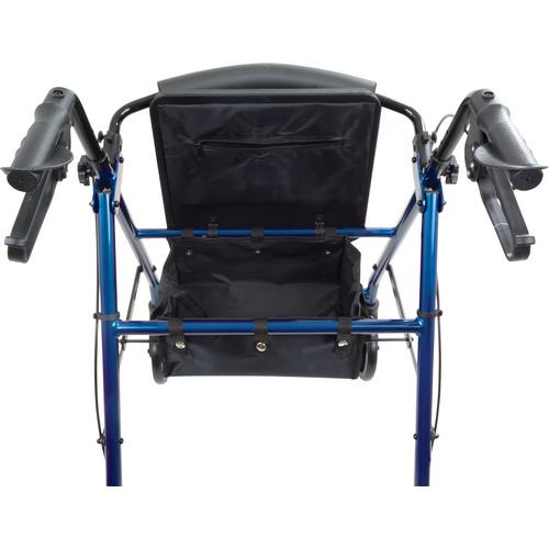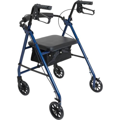 The ProBasics Aluminum Rollator is designed to fit the majority of your patients' fundamental needs with a focus on style and affordability. Constructed of lightweight aluminum, it offers great maneuverability and stability. Equipped with easy-to-operate ergonomic hand brakes, a removable padded backrest and a water-resistant nylon pouch. Easily folds for storage and transport with built-in fold strap. Supports patient weights up to 300 pounds.