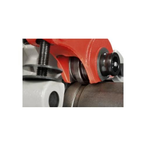 Manageable and compact hand roll groover for producingof grooves on installed thin- and standard Steel pipes. Suitable for installations, sprinkler systems, larger heating units, industrial use and mining.