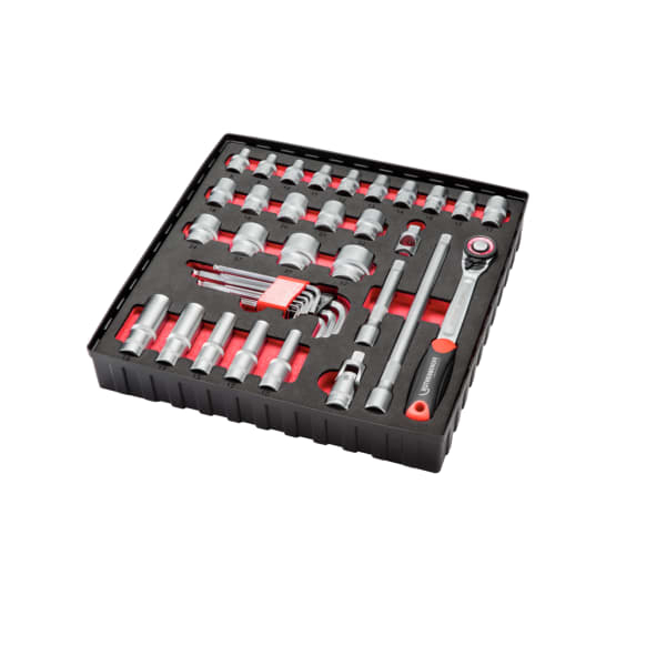 With the ROTHENBERGER 38-piece socket and allen key set 1/2" you can screw hex screws with - 8-32 mm. Can also be used with an extension or a cardan joint. The set also includes hexagon socket keys for a diameter range from 1.5 - 10 mm. Be well equipped for any installations or repair job.