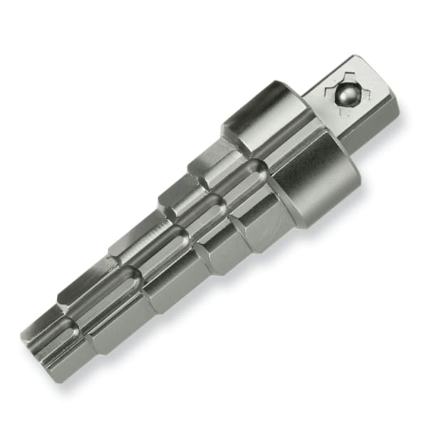 Use the Gas stepped key with ratchet for installing and removing transitions, joints and valves on therms and gas meters