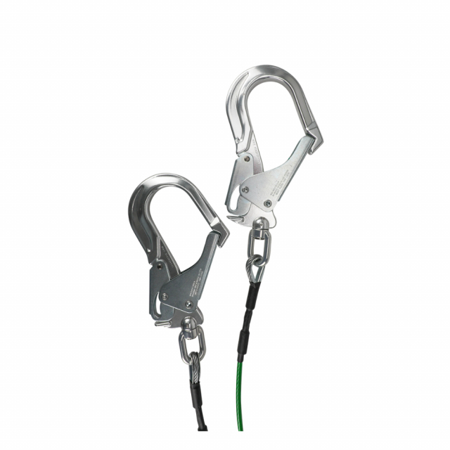 The provides edge protection to users of any weight class, working at both 6' and 12' free fall heights. This versatile all-in-one solution is built with coated 1/4' aircraft grade steel cable, specially engineered intuitive tear webbing to reduce fall arrest force and ballistic absorber cover. Includes dual leg for 100% tie-off, protective label cover and forged aluminum hooks.