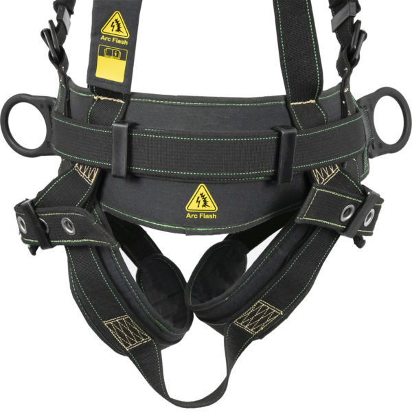 The Arc Flash Aramid Harnesses, built for utility and electrical workers, deliver dependable protection plus all-day comfort. Designed with premium aramid ASTM/NFPA approved webbing and Nomex shoulder, waist and leg pads, Arc Flash harnesses feature either coated, corrosion-resistant dielectric hardware or standard hardware protected with unique component backer. This durable harness provides superior protection in an arc event situation.