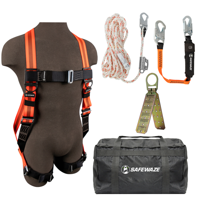 SafeWaze, 020-3064, V-Line Bag Roof Kit: FS99280-E Harness, 018-7004 VLL, FS88560-E3 Lanyard, FS870 Anchor, FS8175 Bag